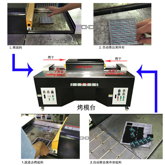 客戶馮小姐今天來到廠內,目的不是為了別的,就是了為了來看金裕的pvc烤模臺設備,我就帶領著馮小姐來到正在安裝的烤模臺面前,給馮小姐介紹烤模臺的內部結構,簡單介紹后就來到了我們打樣人員旁邊,打樣技術人員在旁邊給客戶操作烤模臺,并且給介紹道pvc自動烤模臺,主要用于pvc產品顏色定型烤色和底料烤熟工藝。如:pvc公仔禮品、商標、手表帶、U盤套、鑰匙扣、行李牌、膠章、杯墊等。機器自動進出模具,上下加溫獨立控制,配有2工位加溫區,帶自動冷卻。帶著馮小姐了解完pvc烤模臺后,馮小姐也看到金裕的烤模臺是非常不錯的,當然也看到廠內也有現貨,就當場付了定金.....