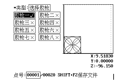 點膠機修改加工點數據(1) 手動輸入方式 先通過上下鍵將焦點移動到需要修改的數據欄,如果該數據欄的格式為數值,可直接輸入數字修改其中類容,如果為多項選擇,則可按確定鍵切換選擇內容: