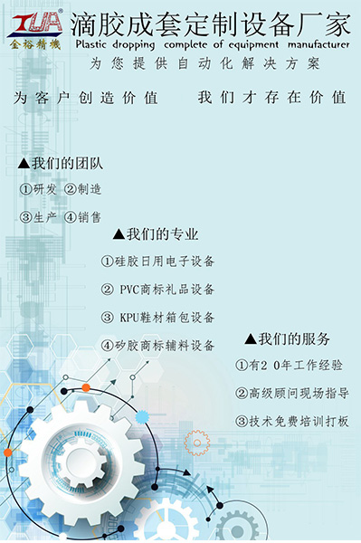 東莞市金裕自動化機械設備有限公司成立于2000年,金裕坐落于東莞市大嶺山向東工業區,創辦硅膠、PVC商標禮品生產設備.金裕研發的全自動全自動點膠機、矽膠機、油壓機、KPU鞋材機以及終于實現了的智能無人車間生產流水線,金裕的自動化設備可以做到讓你省人、省電、省管理。金裕公司歡迎新老顧客來訪,選擇金裕,沒有顧慮。www.rhqgw.cn |