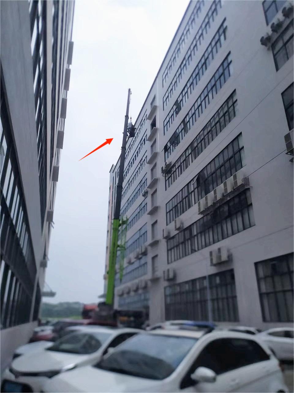 先是吊車將這臺硫化機(jī)設(shè)備從樓層上運(yùn)輸下來,再轉(zhuǎn)移到運(yùn)輸車上進(jìn)行打包等操作。