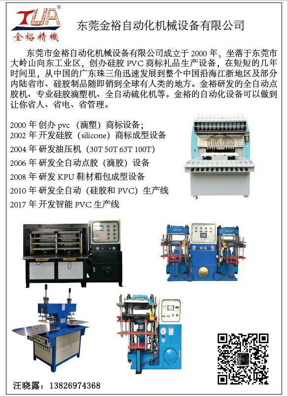 東莞市金裕自動化機械設備有限公司成立于2000年,金裕坐落于東莞市大嶺山向東工業區,創辦硅膠、PVC商標禮品生產設備.金裕研發的全自動全自動點膠機、矽膠機、油壓機、KPU鞋材機以及終于實現了的智能無人車間生產流水線,金裕的自動化設備可以做到讓你省人、省電、省管理。金裕公司歡迎新老顧客來訪,選擇金裕,沒有顧慮。www.rhqgw.cn |