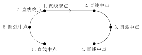 點膠機插入多段線示例 ![]() 點列表界面 點膠機在剛剛插入完的直線后要在插入多段線。此時,光標反顯位于“直線終點”(如圖3-20)。 要插入的多段線示例如圖3-21所示,為一個跑道形,跑道形應該依次插入:1.直線起點,2.直線終點,3.圓弧中點,4.直線終點,5.直線中點,6.圓弧中點,7.直線終點。其中“直線起點”和“直線終點”是重合的。