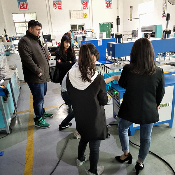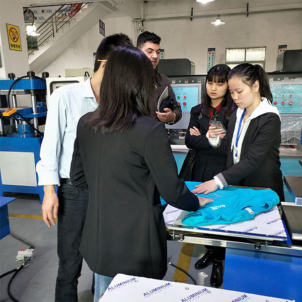 今天上午廠內(nèi)來一位意大利的客戶,這次客戶主要是過來看凹凸模壓花設備的,來的時候帶來了一個翻譯來到了現(xiàn)場。在打樣過程中我們的技術人員邊給這個客戶介紹凹凸模的流程翻譯在一旁邊翻譯,現(xiàn)場這個意大利客戶現(xiàn)場看到我們技術人員打樣的過程,還是挺滿意的,之后我們外貿(mào)銷售人員帶顧客來到了二樓的樣品間繼續(xù)介紹,過來一會吃了個飯后,聊了一會,就下了一臺凹凸模壓花機